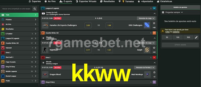 O kkww oferece uma grande seleção de opções de apostas em e-sports com probabilidades competitivas
